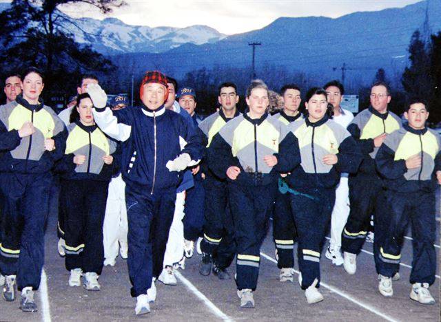 김영삼 前대통령 칠레방문 당시 산티아고 육군사관학교생들과 조깅