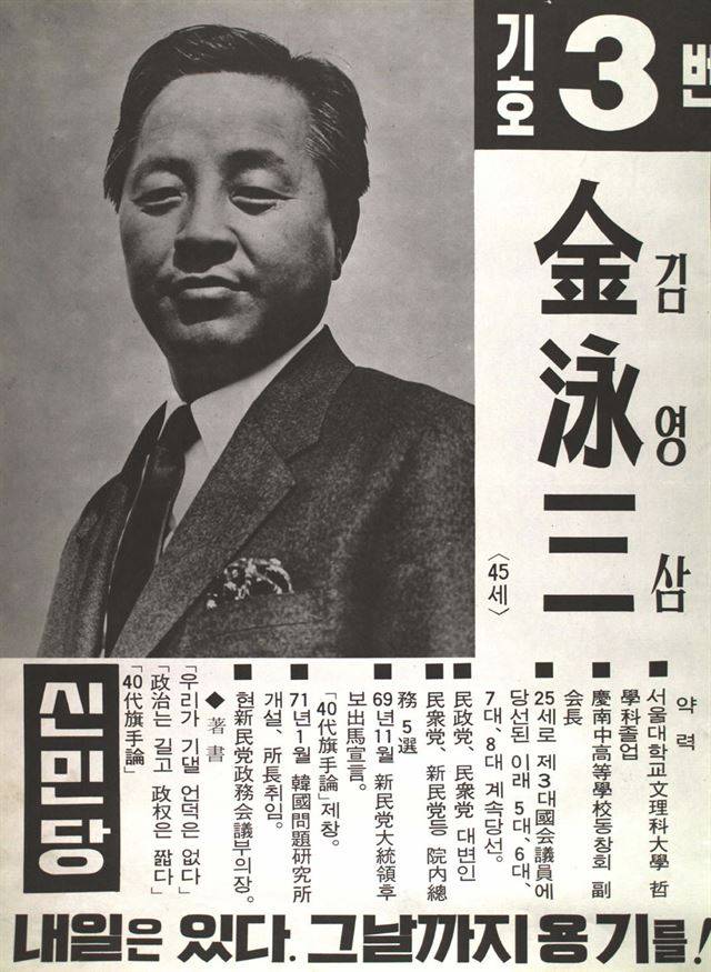 1973년 9대 국회의원 선거에 출마한 김영삼 후보의 포스터