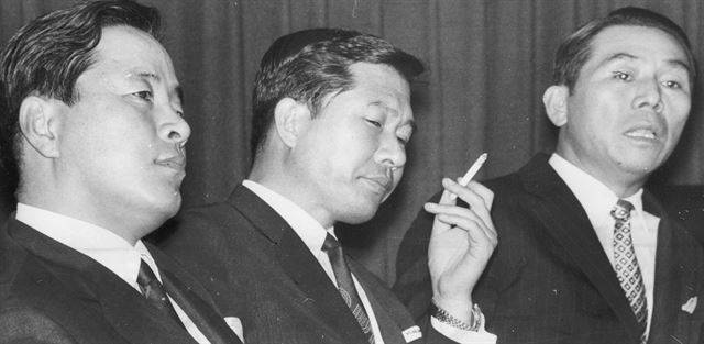 1971년 총선에는 젊은 세대가 야당의 후보로 나서, 정권교체와 당의 체질개혁을 동시에 이룩해야 한다'고 주장하는 신민당의 40대 후보 경쟁자들. (왼쪽부터 김영삼, 김대중, 이철승씨)