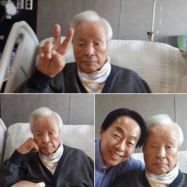 그림 28 2014년 10월 12일 폐렴으로 1년 6개월 동안 서울대병원에서 입원 치료를 받아오던 김영삼 전 대통령과 차남인 김현철 전 새누리당 여의도연구소 부소장이 퇴원을 앞두고 12일 자신의 페이스북에 부친과 함께 있는 모습을 공개했다.
