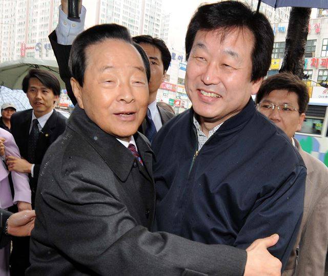 2008년 3월 19일김영삼 전 대통령이 한나라당 공천에 탈락해 무소속 출마를 선언한 김무성 의원을 격려하기 위해 19일 부산 남구 용호동 김 의원 선거사무실을 찾아 김 의원과 얼싸안고 있다.