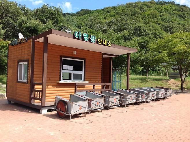 재미있는 것은 안내소 앞에 세워진 리어카는 짐을 옮길 때만 사용이 가능하며 다른 용도로 사용은 금지되어 있지만 본인이 방문한 날에는 관리자와 리어카에 아이들을 때우고 놀고 있는 캠퍼들과 실랑이하는 모습에 나름의 추억거리의 아닌가 생각이 든다.