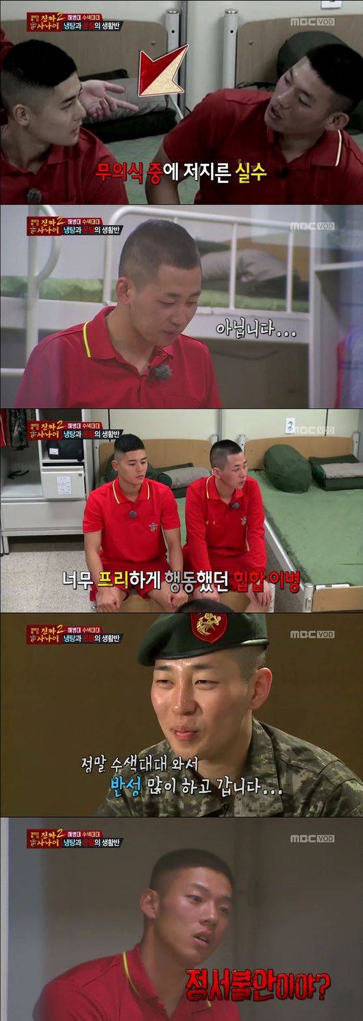 선임은 “아무리 가족 같은 분위기라고 해도 이건 아니지 않나”라고 지적을 했다. 이후 딘딘은 저녁 점호 때 몸을 움직여서 또 다시 혼이 났다. 집중하지 않는 딘딘에게 단단히 화가 난 선임의 불호령에 동기들은 물론이고 안방극장이 잔뜩 긴장할 수밖에 없었다.