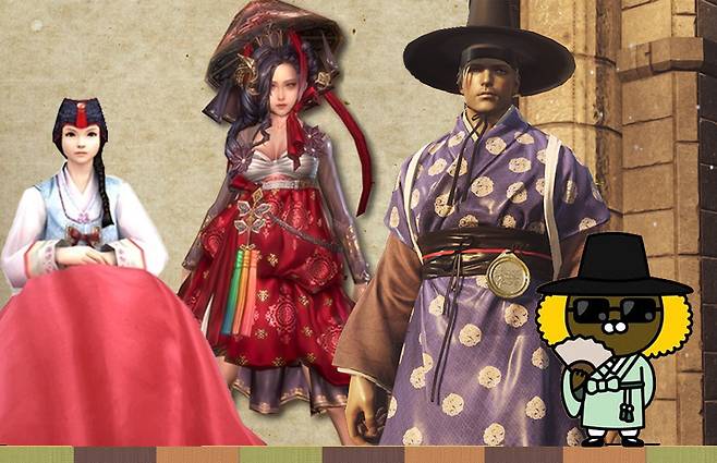 또한 '러스티블러드' '세븐나이츠 for Kakao' '엘브리사 for Kakao' '프렌즈팝 for Kakao' 등 다수의 모바일 게임 속에서 명절 분위기에 걸맞게 한복 코스튬이나 한복을 입은 캐릭터가 등장한다.