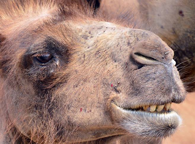| ▲ 낙타의 피. 낙타 몸 여기저기에 사막의 모기에 물린 작은 핏자국이 있다. |
