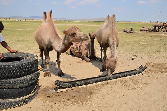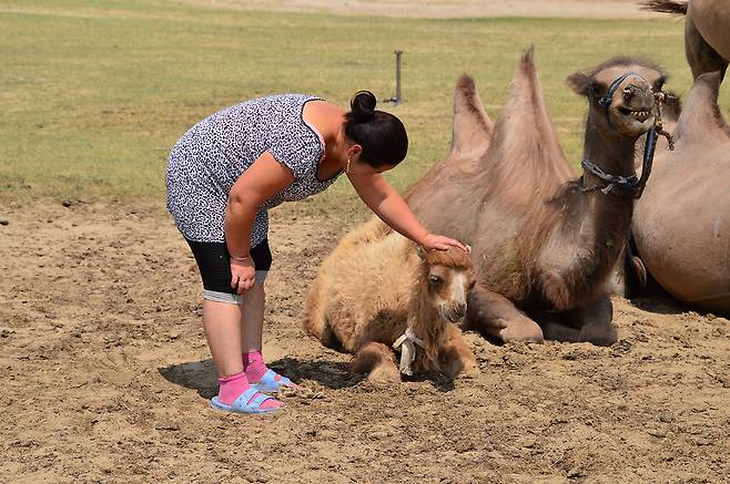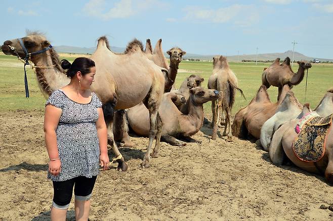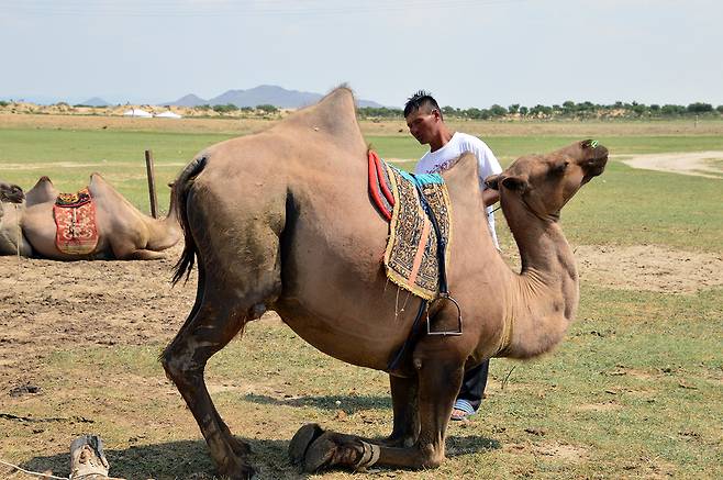 "중동의 낙타는 단봉낙타지만 몽골의 낙타는 쌍봉낙타라서 다른 낙타예요. 원하시면 낙타 타기 말고 말 타기를 할 수 있어요. 하지만 요새 한국에서 온 여행객들도 몽골에서 다 낙타를 타고 있어요."