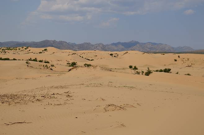 나는 몽골의 중서부 초원지대에서 엘승타사르하이(элсэн тасархай)의 사막을 찾아가고 있었다. 몽골에서 엘승타사르하이를 찾는 이유는 이곳에 길게 띠처럼 이어진 사막지대가 있기 때문이다. 울란바토르에서 몽골 남부의 고비(Gobi) 사막까지 사막 여행을 하기에는 오랜 시간이 걸리기 때문에 작은 사막지대를 경험할 수 있는 엘승타사르하이 사막은 여행자들에게 인기를 끌고 있다.