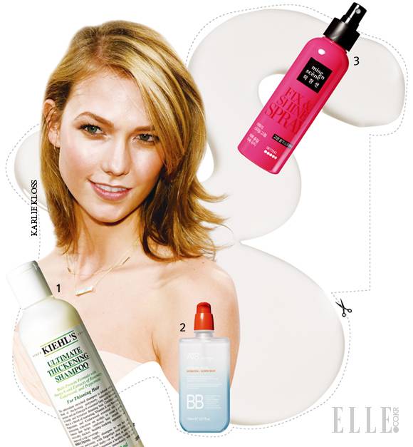 1 볼류마이징 샴푸로 데일리 케어를 해주면 더욱 풍성한 헤어스타일을 유지할 수 있다. 모발에 단백질을 채우고 모근을 강화해 주는 얼티밋 씨크닝 샴푸, 2만8천원대, 키엘.