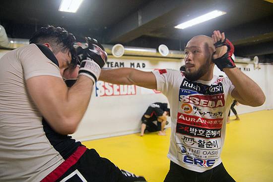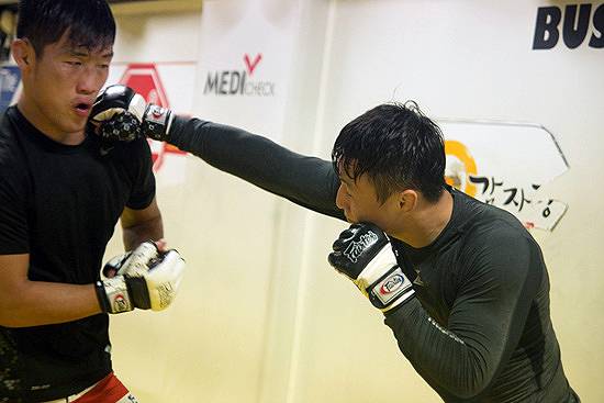 최두호는 오는 28일 서울 올림픽 체조경기장에서 열리는 'UFC 파이트 나이트 서울 대회(UFC FIGHT NIGHT SEOUL)'에서 샘 시실리아(29·미국)와 경기한다. 스포티비뉴스의 UFC 특별취재팀은 1년 만에 옥타곤으로 출격하는 최두호가 김동현, 함서희 등과 훈련하는 부산 팀 매드 본관을 지난 5일 찾았다.