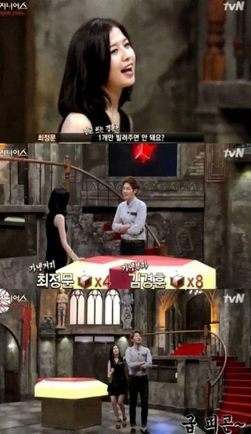 이날 ‘더 지니어스’ 최정문은 김경훈에게 “가넷 하나만 빌려달라”며 “가넷 매치가 아니면 다시 주겠다”고 애교 섞인 표정으로 말했다.