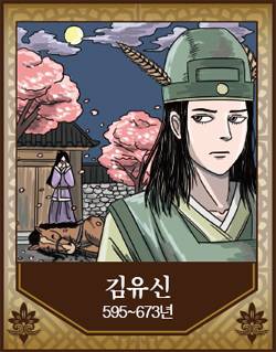 신라의 명장으로 세 나라를 통일하고 당나라 군대를 몰아내 삼국시대 최고의 영웅으로 꼽힌다. 『삼국유사』에는 김유신이 해·달 등 일곱 별의 정기를 받아 등에 ‘칠성’ 무늬가 있다는 탄생 설화가 나온다.