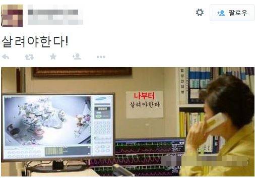 16일 인터넷에는 지난 14일 서울대병원 메르스 치료 격리병동을 방문한 박 대통령의 사진을 패러디한 이미지가 쏟아졌다. 컴퓨터 모니터를 바라보며 의료진과 통화하는 박 대통령의 모습인데, 벽에 붙은 A4 용지에 ‘살려야 한다’는 문구가 쓰여 있어 “과도한 설정이 아니냐”는 논란이 일었던 사진이다.