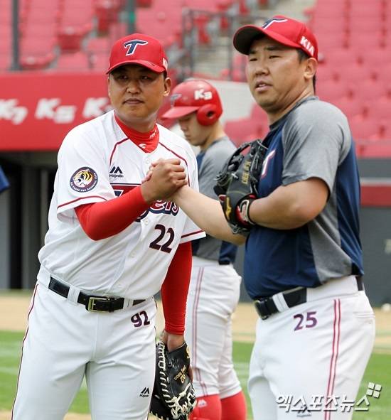 [엑스포츠뉴스=광주, 나유리 기자] KIA 타이거즈의 10번째 한국시리즈 우승 주역이었던 김상훈과 유동훈이 정든 그라운드와 선수로서 마지막 작별 인사를 한다. 두 사람 모두 '우승의 추억'을 가슴에 품고 새 출발을 준비한다.