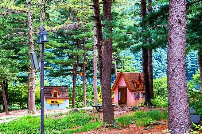 울창한 잣나무 숲은 아침고요수목원을 대표하는 또 하나의 명소로, 삼림욕을 즐기며 천천히 산책하기 좋은 곳입니다.