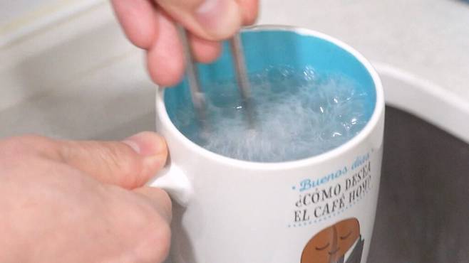 머그컵도 사용할 수 있지만, 물이 넘치지 않도록 조금 넉넉한 용기를 사용하는 게 좋아요.