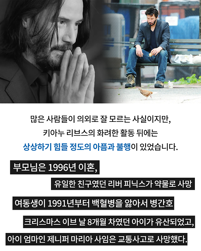 키아누 리브스가 가족, 친구, 연인을 잃고 깨달은 인생의 진리 "우리가 죽으면..."