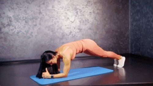 매트에 팔꿈치를 대고 플랭크 자세로 엎드립니다. 복부에 힘을 주며 왼쪽 무릎을 오른쪽 팔꿈치 방향으로 당겼다가 다시 되돌립니다. 이어서 오른쪽 무릎을 왼쪽 팔꿈치 방향으로 교차해 당긴 뒤 원위치로 돌아갑니다.