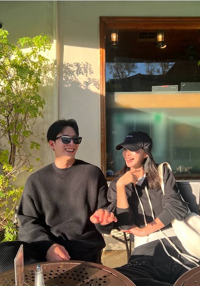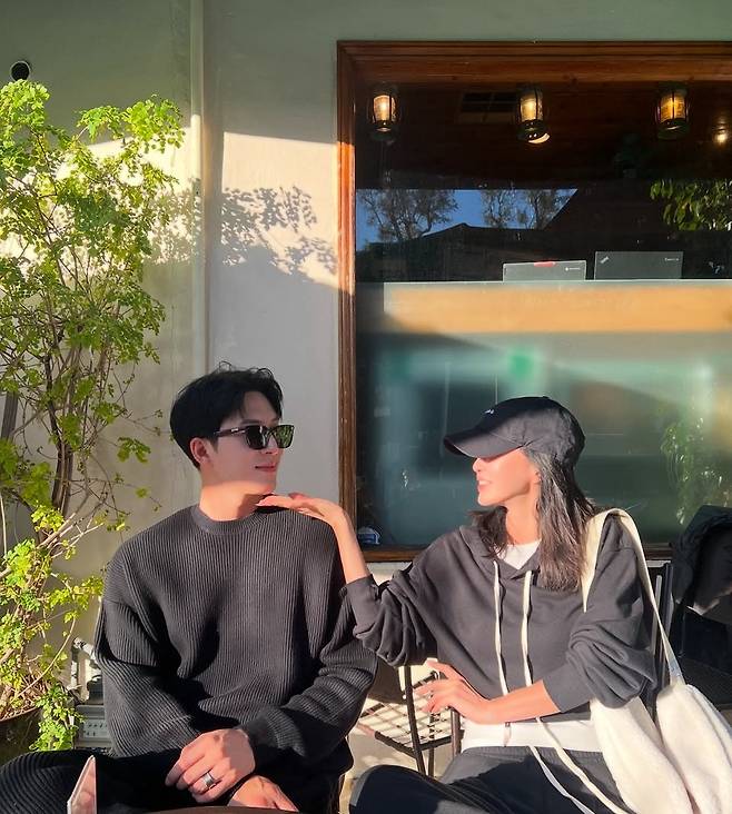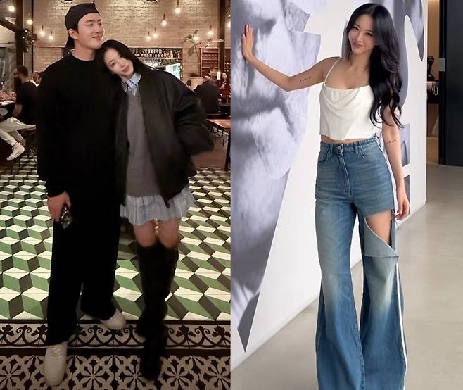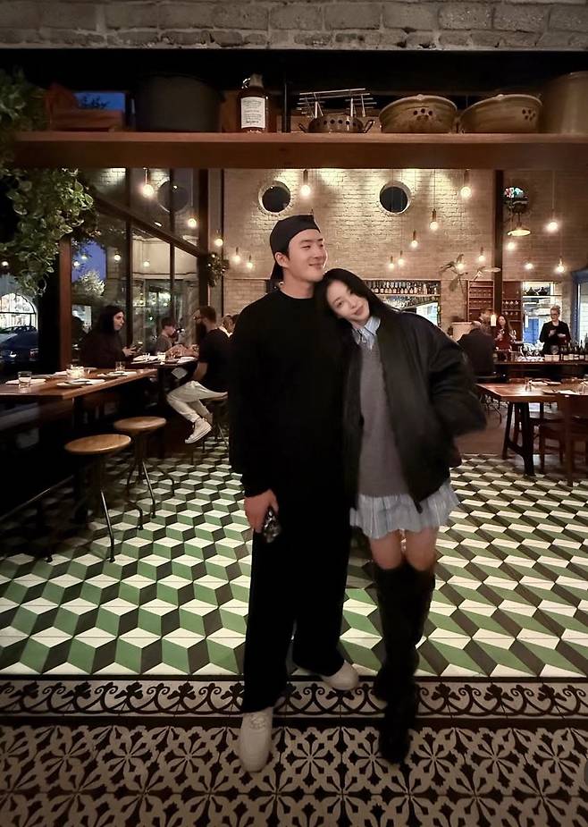 무릎 위까지 오는 롱부츠로 균형감 있는 실루엣을 완성하며, 캐주얼한 커플룩 무드도 자연스럽게 담아냈습니다.