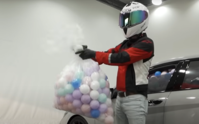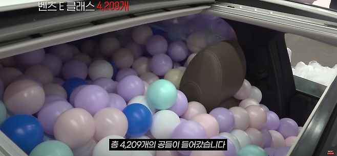 지름 8CM의 공을 차량 실내에 넣어서 확인해 보았을 때 벤츠 E 클래스의 경우 4,209개의 공이 들어가는 모습을 볼 수 있었습니다.