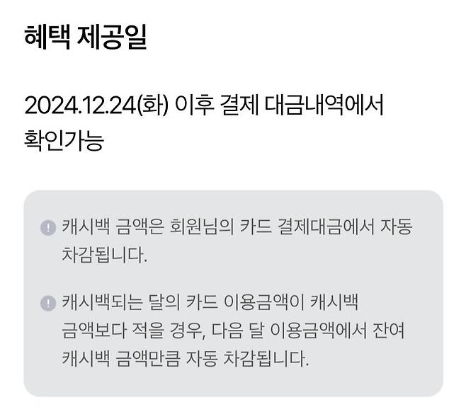 12.24일 이후 결제대금에서 차감 위해선 12월초경까지