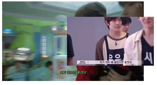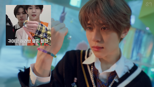 이번 MV는 앞선 프로모션에서 등장한 ‘위시 젤리 샵’과 이어져 멤버 시온의 고백을 남은 NCT WISH 멤버들이 지켜보고, 고백 성공을 위해 돕는 모습으로 등장하게 되는데요. 챗봇 프로모션에서 나눈 대화나 사용된 소품들이 MV에도 등장해 몰입감을 더욱 높이고, 이를 찾아보는 재미도 덤으로 느낄 수 있었네요!