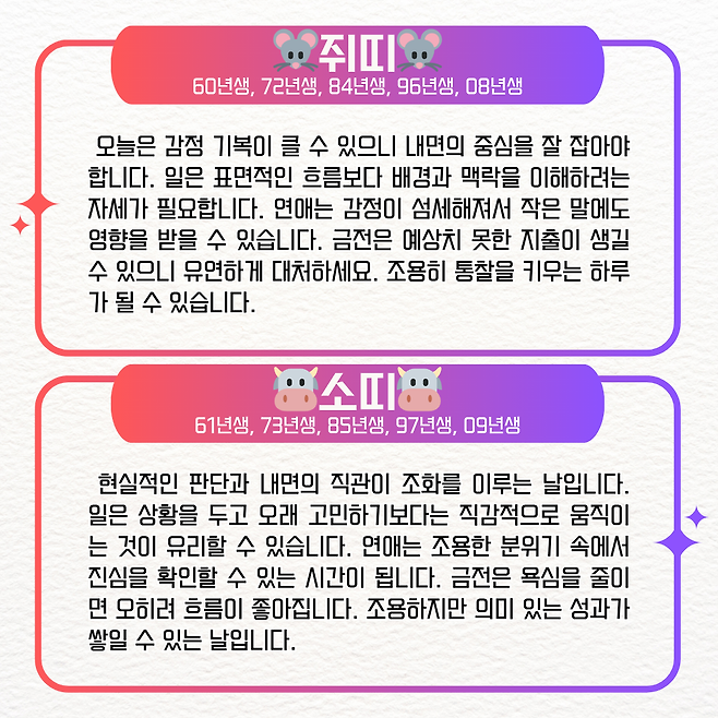 [오늘의 운세] 2025년 10월 9일 목요일