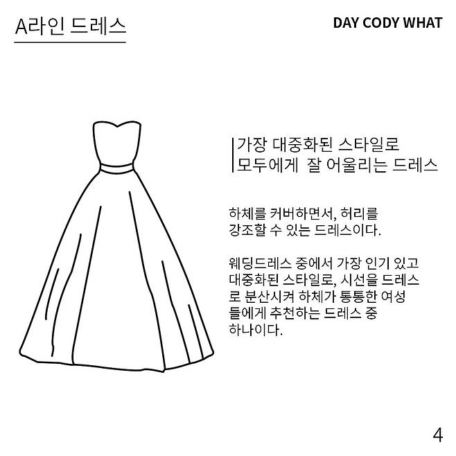 대중적으로 제일 인기가 많은 드레스가A라인 드레스이긴 하지만, 다른 디자인의 드레스들도 꽤나 괜찮은 스타일들이 많답니다😮