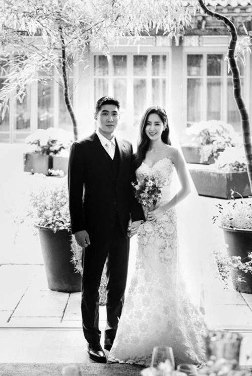 2018년 5월 서울 신라호텔에서 가족과 지인 100여 명만 초대한 소규모 결혼식이었고, 사회는 배성재 아나운서, 축가는 윤종신과 손태진이 맡았습니다.