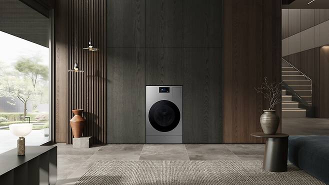 인피니트 라인으로 처음 선보인 올인원 세탁건조기 '인피니트 AI 콤보'는 스테인리스 스틸 소재의 아름다움을 강조한 디자인이 특징이다.