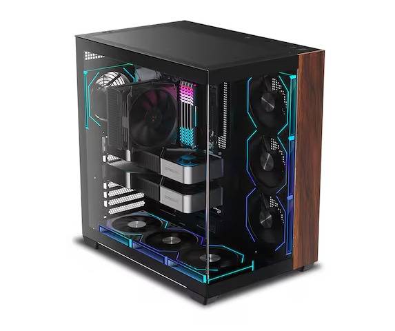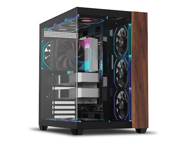 케이스로는 세련된 디자인과 실용성을 모두 갖춘 '마이크로닉스 WIZMAX 우드리안 MAX'를 사용했다. 전면과 측면에 강화유리를 적용한 파노라믹 구조로 튜닝 효과를 높인 것은 물론 월넛 원목 패널을 더해 고급스러운 디자인을 완성했다. 여기에 듀얼 챔버 설계를 통해 폭넓은 확장성과 함께 조립 편의성까지 만족시켰다. 특히 9개의 확장 슬롯을 제공해 듀얼 GPU도 무리 없이 구성할 수 있다.