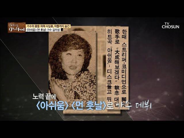 김미성은 1970년대 히트곡 '아쉬움', '먼 훗날'로 사랑받았던 가수이자, 한때 인기 코미디언으로도 활약했다.