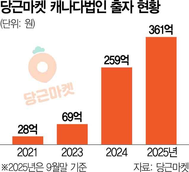12일 업계에 따르면 당근마켓은 올해 9월까지 캐나다법인에 361억 원을 출자했다. 2021년 캐나다법인에 28억 원을 출자한 것을 시작으로 지난해에는 259억 원을 캐나다법인에 투입했다. 아직 3개월여 남았지만, 올해 출자금이 이미 지난해 규모를 뛰어넘은 셈이다. 현재까지 캐나다법인에 들어간 출자금은 총 717억 원이다.