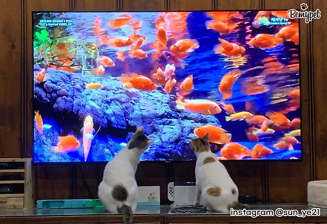 하지만 어떤 고양이는 TV 속 고양이를 향해 하악질 하거나 주변에 있던 집사나 고양이에게 공격성을 보이는 경우도 있다고 하니 주의해야 합니다.