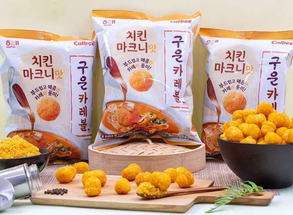 해태제과는 인도 정통 카레의 부드러운 매콤함과 고소함을 볼 스낵으로 구현한 ‘구운 카레볼’을 출시했다. 해태제과만의 열풍공법으로 굽는 구운 스낵의 17번째 시리즈다. 구운 카레볼이 선보이는 맛은 부드러운 풍미로 한국인의 입맛에 잘 맞는 치킨마크니다. 향신료의 자극을 낮춰 누구나 부담 없고 크리미한 단맛과 은은한 매콤함의 조화로 느끼함까지 잡았다. 대형마트 기준 판매가는 1,890원이다.