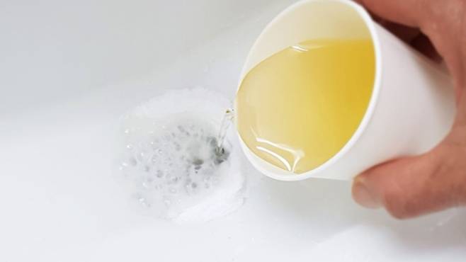 이때 베이킹소다 한 컵과 식초 한 컵을 부으면 아주 손쉽게 해결이 된답니다.
