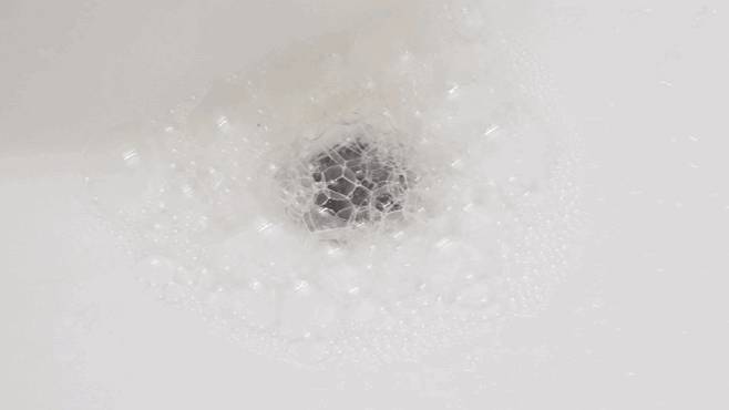 그러면 이렇게 세면대가 보글보글 거품이 올라오며 내부가 청소된답니다. 그리고 마지막에 따듯한 물을 부어 남은 찌꺼기가 내려갈 수 있게 해 주면 끝!