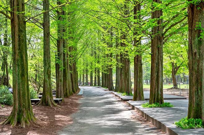 수목원 내부에는 주제별로 구성된 다양한 정원이 조성되어 있다. 열대식물원과 화목원, 무궁화공원 외에도 담양을 연상시키는 메타세콰이어 산책길이 인상적이다. 이 길은 가을 단풍 명소로도 잘 알려져 있으며, 미국풍나무가 함께 어우러진 가로수길은 매년 30만 명이 찾는 인기 장소다. 특히 어린이들을 위한 야생동물원과 계절 체험 프로그램은 가족 단위 방문객에게도 큰 호응을 얻고 있다.