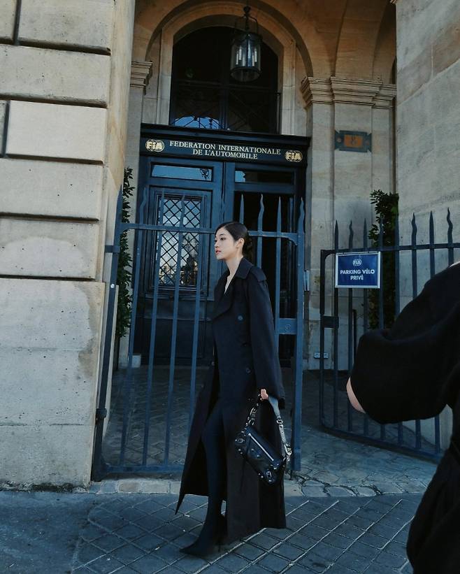 발렌시아가 패션쇼에 참석한 배우 노윤서의 올블랙룩. 미니 드레스는 물론 하이힐과 가방까지 블랙으로 통일했다. 시크하면서도 섹시한 분위기가 시선을 사로잡는다.
