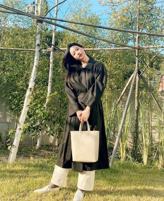 배우 오연서는 블랙 코트에 화이트 팬츠를 매치해 화사하고 여성스럽게 스타일링했다. 신발과 가방을 심플한 디자인의 화이트 제품으로 선택해 군더더기 없이 깔끔한 룩이 연출됐다.
