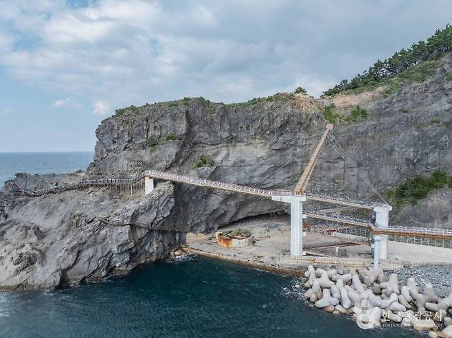 태하 해안산책로는 대부분 데크길로 정비되어 있어 비교적 안전하게 걷기 좋습니다. 절벽을 따라 이어지는 구간에서는 발아래로 바다가 훤히 내려다보여, 마치 바다 위를 걷는 듯한 짜릿한 체험을 하게 됩니다.
