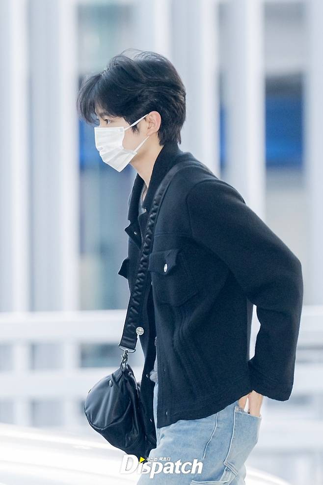유우시는 블랙 가디건과 데님 팬츠로 멋을 냈다. 잘생긴 비주얼이 돋보였다.