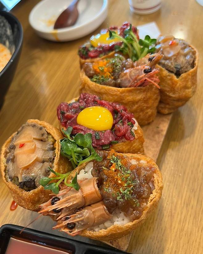 라면의 쫄깃함과 소고기의 부드러운 만남이 매력적인 '고모네 식당'의 시그니처 '육회비빔라면'. 정육식당이라 뛰어난 육회의 선도도 한 몫 하는 곳. 매일 한우 1+ 이상 등급의 고기를 직접 손질하고 감칠맛이 살아 있는 양념을 더해 내어 주신다. 육회를 먹지 못한다면 '대패 삼겹'이 들어 있는 '대패비빔라면'도 별미이다. 보자마자 안 먹어봐도 뛰어난 조합 임을 짐작할 수 있는 곳.