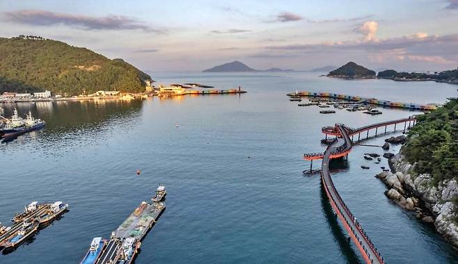 근방에는 미조항 해상산책로가 조성돼, 바다를 더욱 가까이에서 즐길 수 있다. 강화유리 바닥 아래로 바다가 내려다보이고, 알록달록한 멸치 조형물이 더해져 걷는 내내 소소한 볼거리가 이어진다. 천천히 걸으며 항구와 바다를 함께 감상하기에 좋은 해상산책로다.