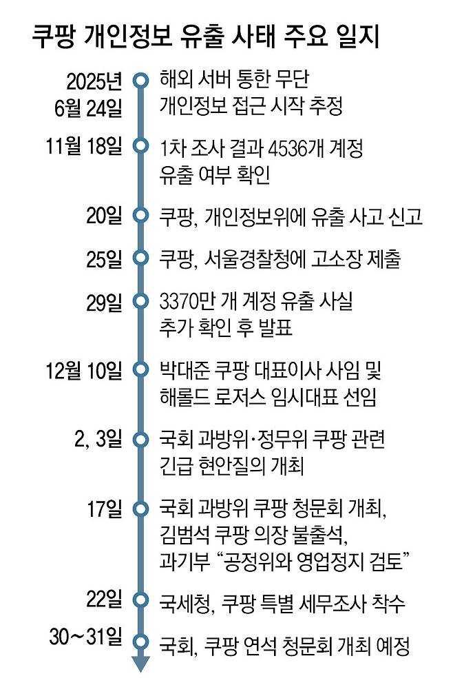 국회 역시 쿠팡에 대한 연석청문회를 예고하며 압박 수위를 높이고 있다. 더불어민주당은 쿠팡의 대규모 개인정보 유출 사태에 대해 국회 과학기술정보방송통신위원회를 중심으로 5개 상임위원회가 참여하는 연석청문회를 30, 31일 이틀간 진행한다고 이날 밝혔다. 허영 민주당 원내수석부대표는 “쿠팡 문제가 단순한 개인정보 유출을 넘어 노동과 공정거래 등 다양한 이슈들이 복합적으로 연계됐다”고 설명했다.