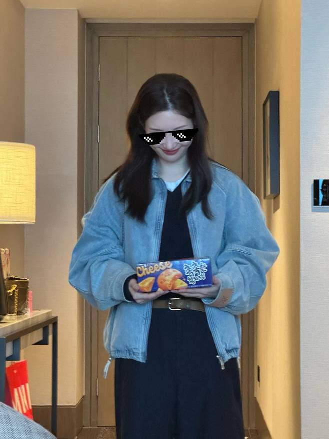 상의로는 은은한 워싱이 돋보이는 연청 컬러의 오버핏 데님 재킷을 선택했습니다.
