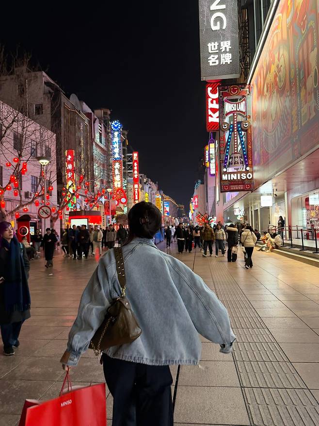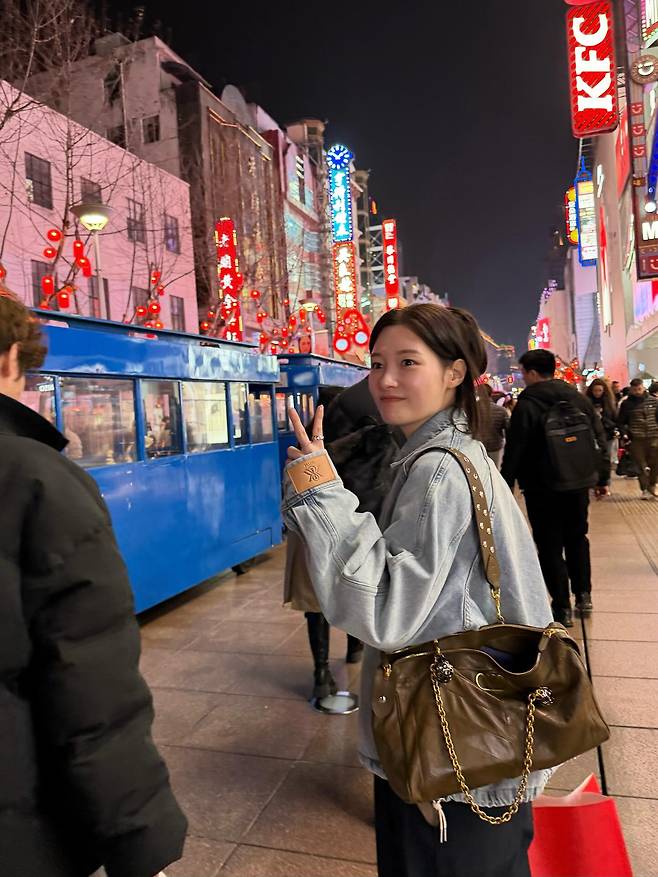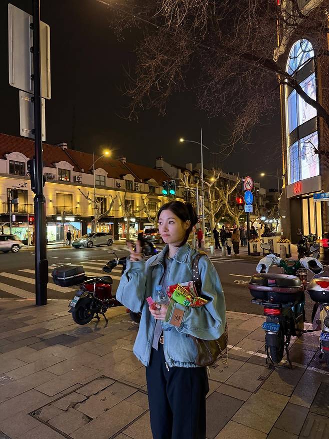 정채연은 화려한 도시의 밤거리를 배경으로, 편안함과 스타일을 동시에 잡은 세련된 스트릿 캐주얼 룩을 선보였습니다.
