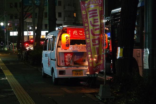 하카타역 근처 니시테츠 호텔 옆에는 굴다리가 하나 있다. '오늘은 계실까?' 긴장되는 마음으로 굴다리를 지나오면, 저 멀리 빨갛게 등을 밝힌 작은 트럭이 보인다. 아는 사람들은 다 안다는 바로 그 타코야키 트럭이다. 이곳에서는 오리지널, 매콤한 맛, 파 마요네즈 등 여러 종류를 주문할 수 있다.