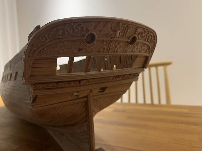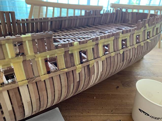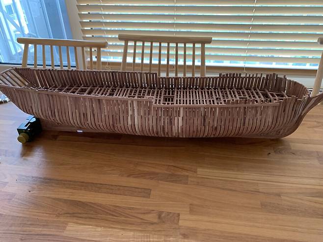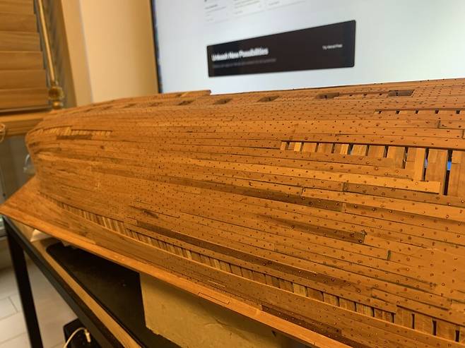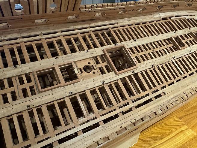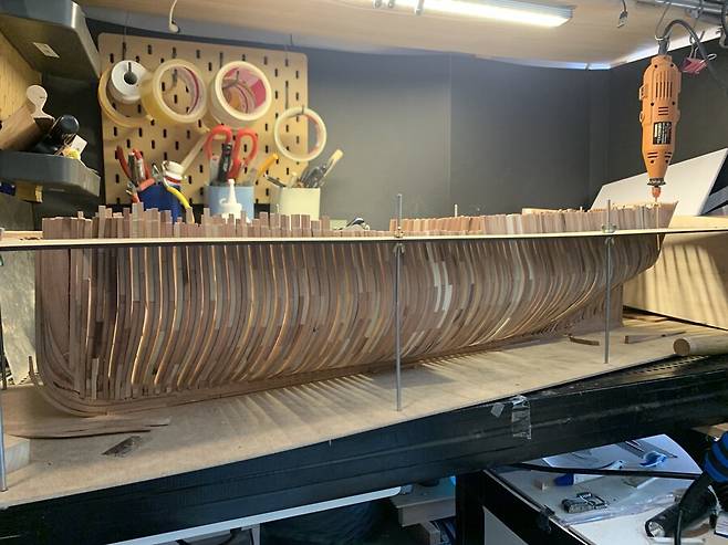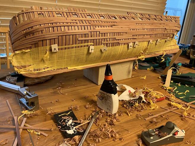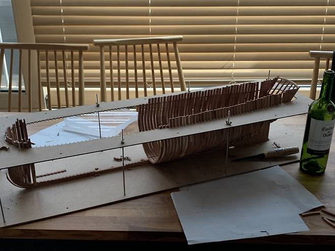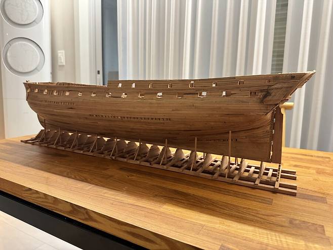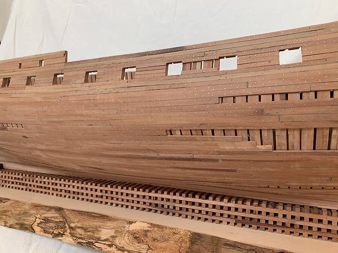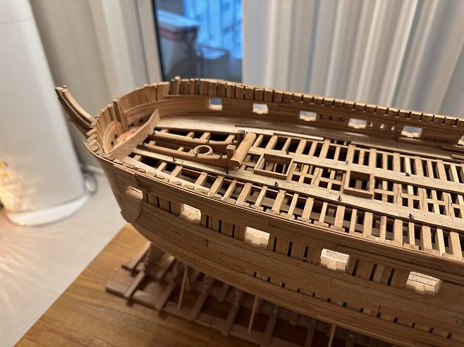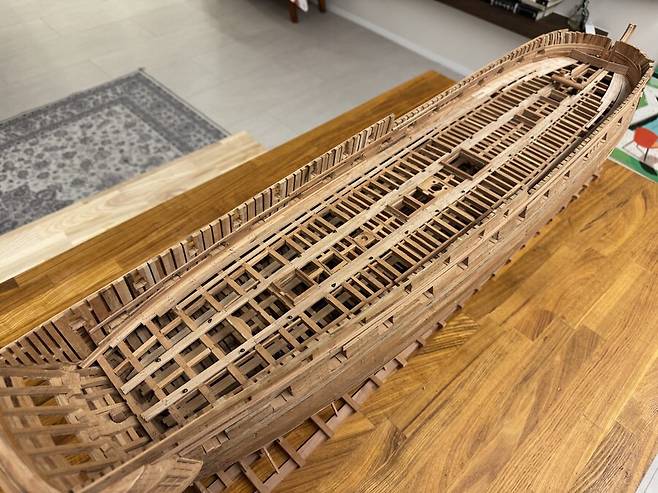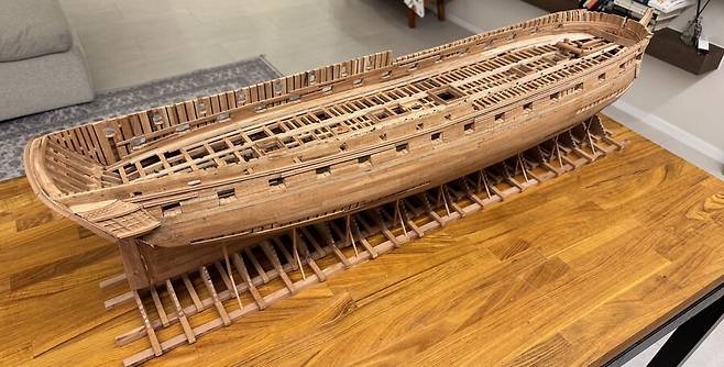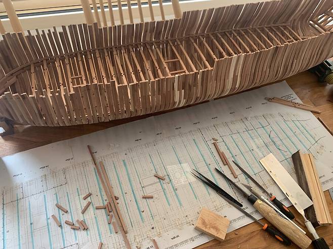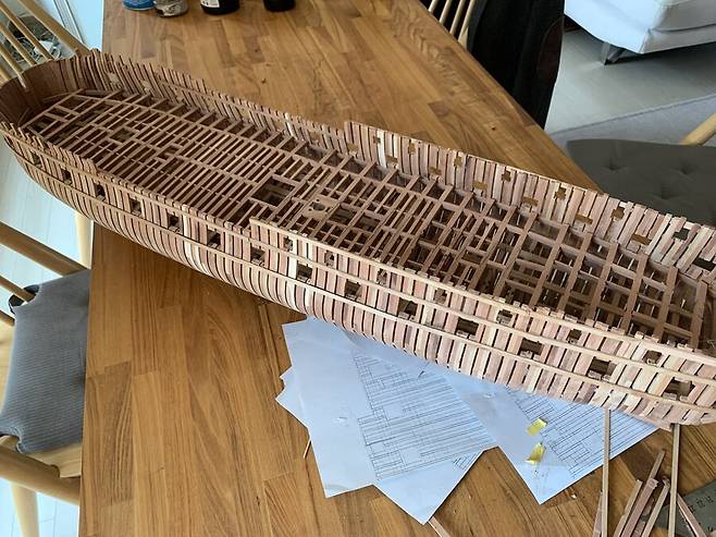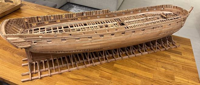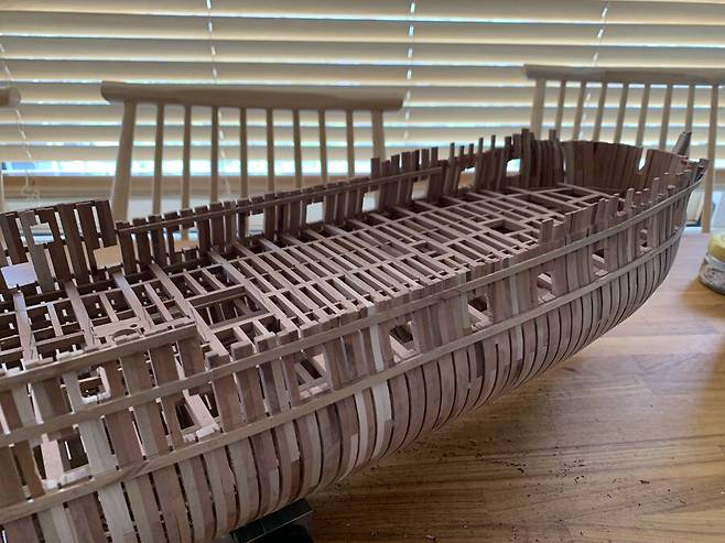 몇달이 걸렸는지 기억이 나지도 않습니다. 1번부터 75번 늑골까지 그리고 선수와 선미 모든 부품 하나하나에 애착을 가지며 만들었는데 지금보니 어떻게 했나 싶습니다. 그냥 계속 만들기를 반복 합니다.