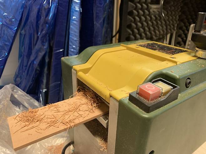 자동대패로 판재의 두께를 4mm 로 깍아내서