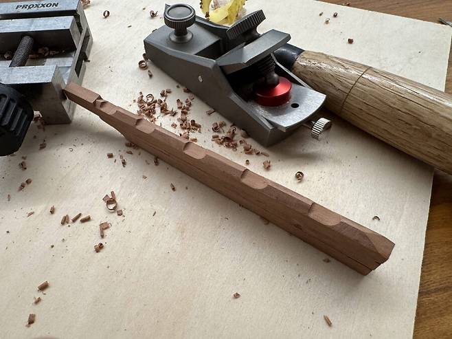 열심히 베리타스 대패로 밀어줍니다. 저 대패 하나가 새끼손가락만 합니다.